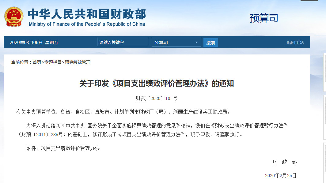 《项目支出绩效评价管理办法》